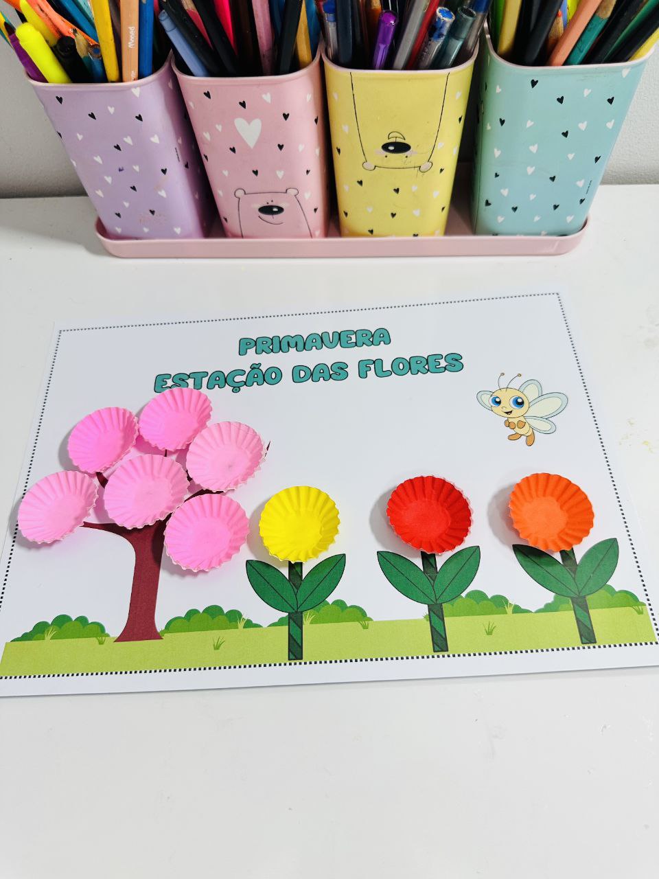 🌼 Com o uso de forminha de doces coloridas, os pequenos constroem flores cheias de vida, estimulando: 🌟 Coordenação motora fina 🌟 Criatividade e imaginação 🌟 Reconhecimento das cores 🌟 Afetividade com a natureza