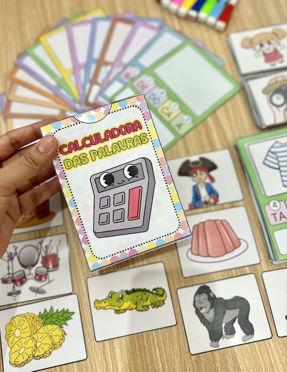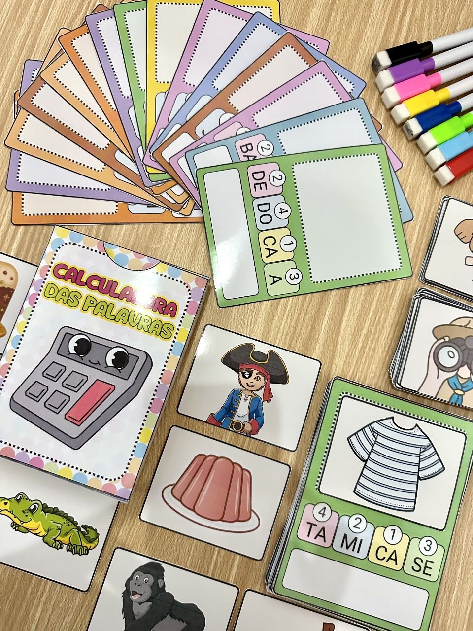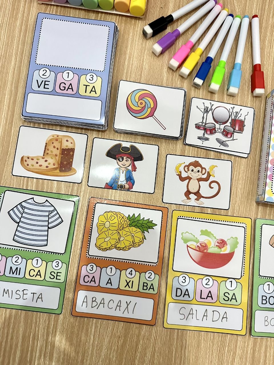 ✅ Com 48 fichas de palavras para a criança organizar as sílabas e descobrir qual figura a palavra representa.