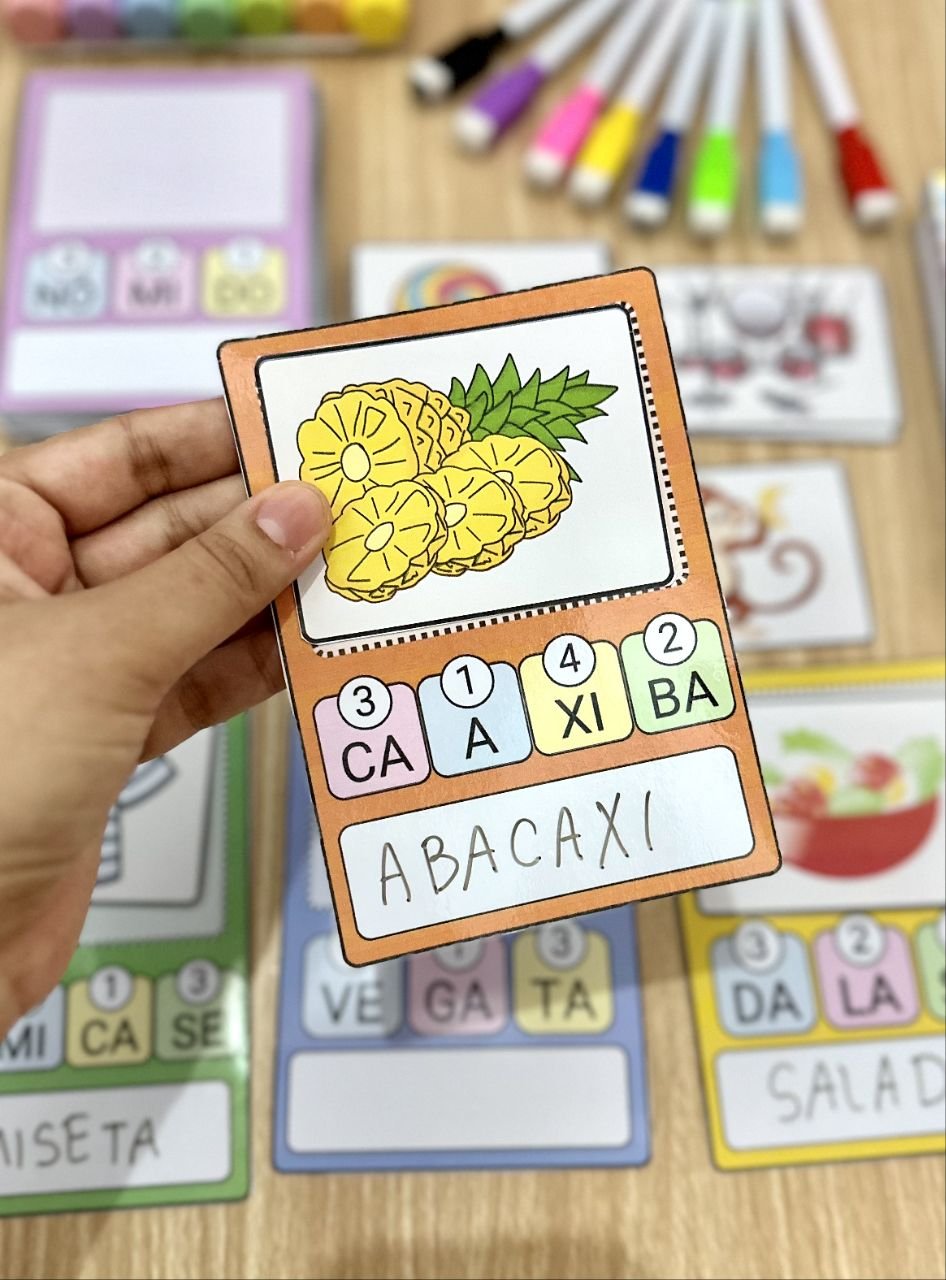 💡 Essa proposta oferece muitas possibilidades de aprendizagem e diversão, atraindo a atenção das crianças enquanto estimula a escrita de palavras e a compreensão do nosso sistema de escrita.