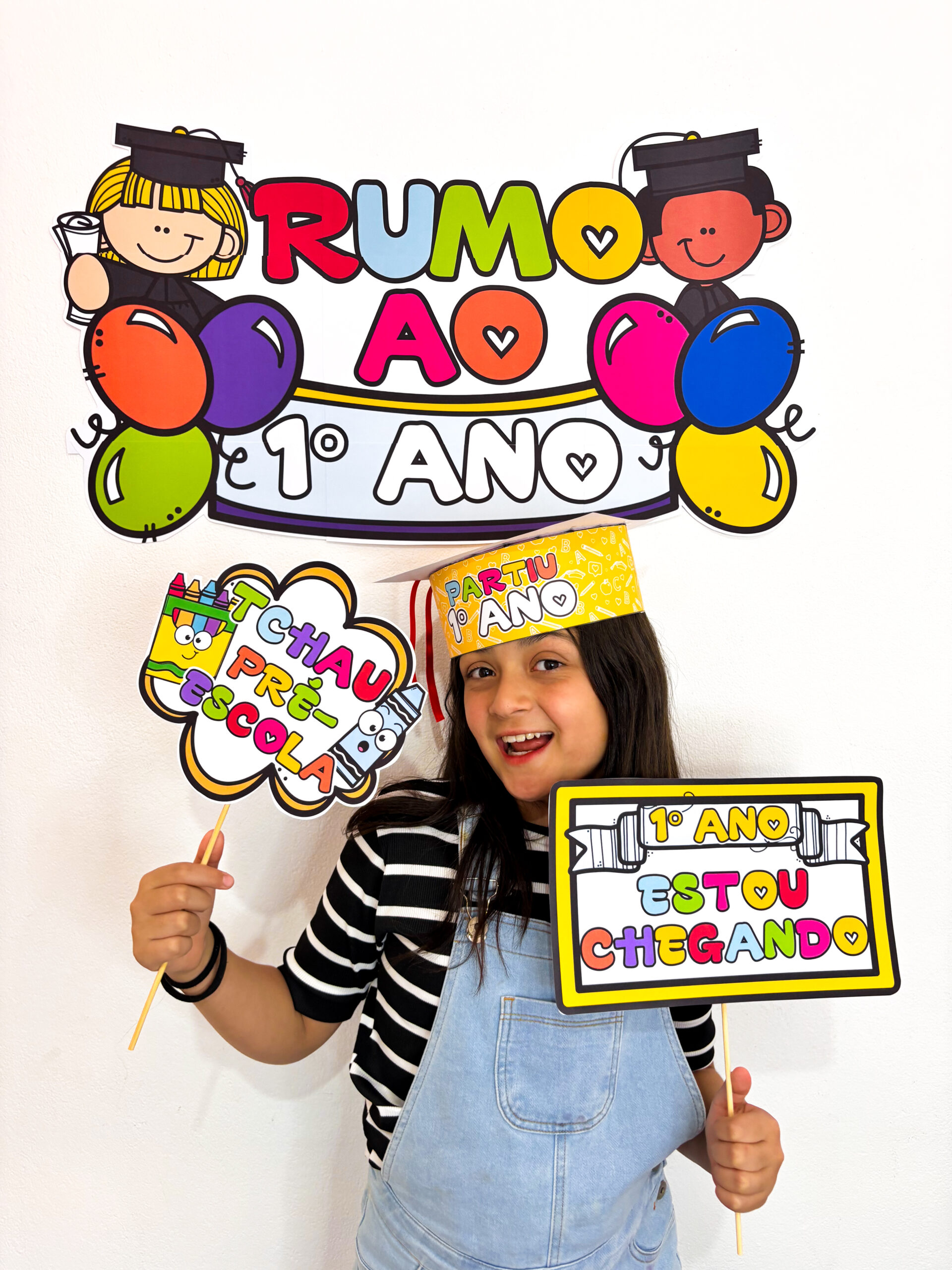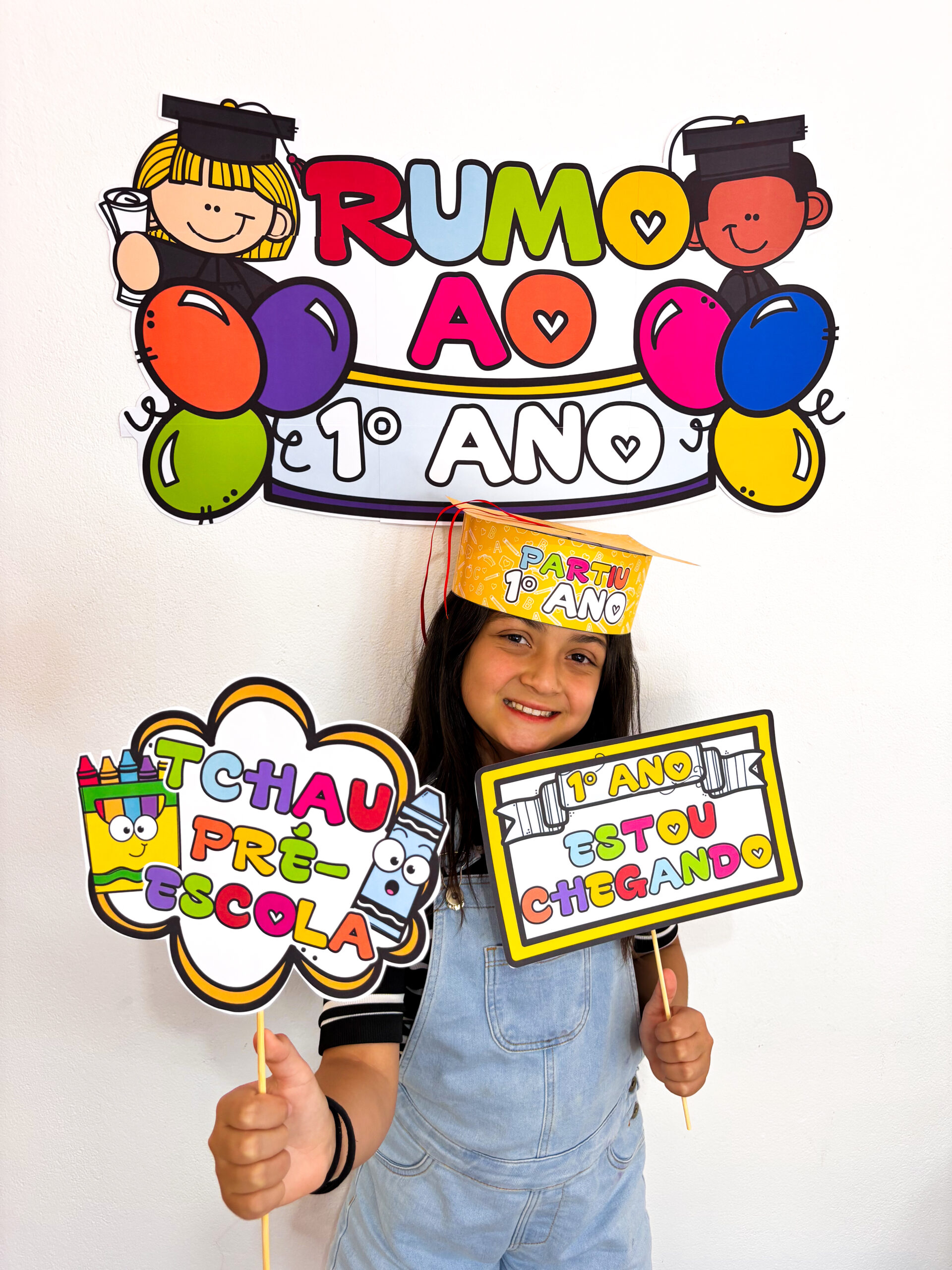 Contém painel temático, plaquinhas para fotos e um capelo super colorido para deixar o registro ainda