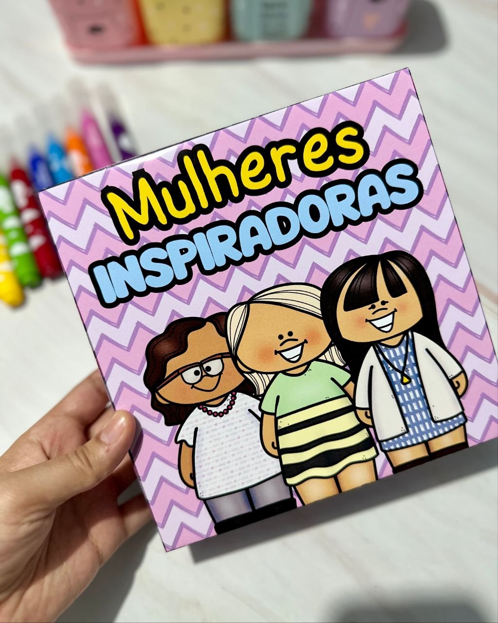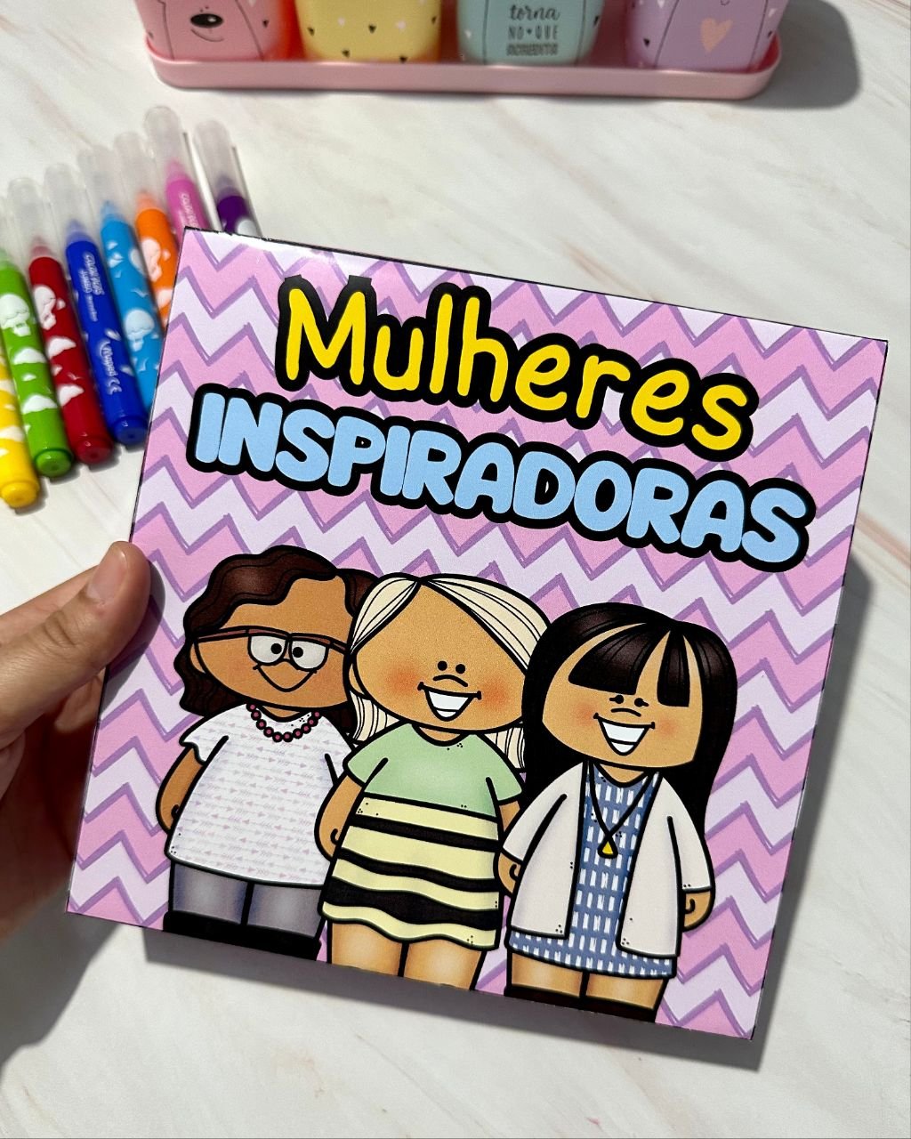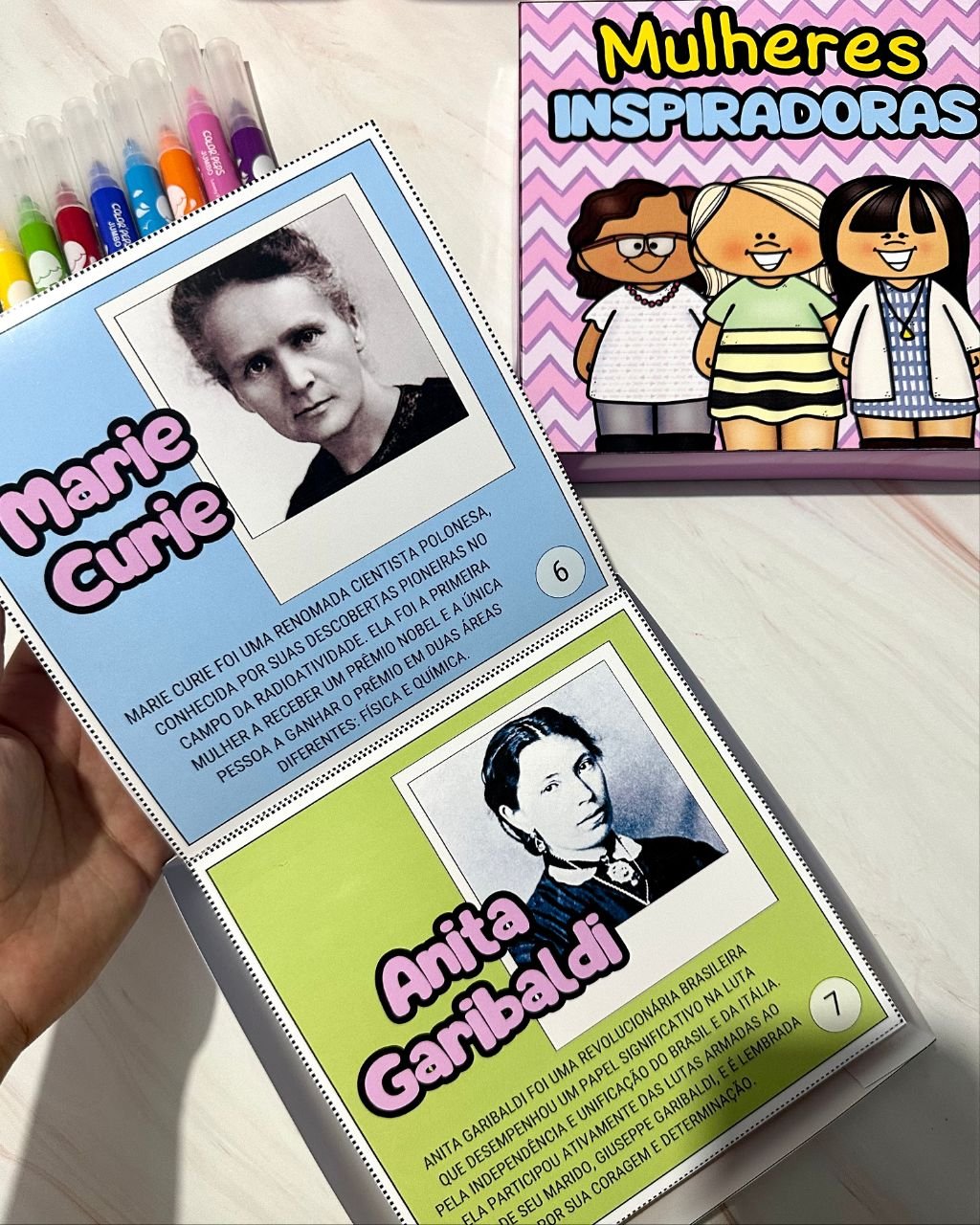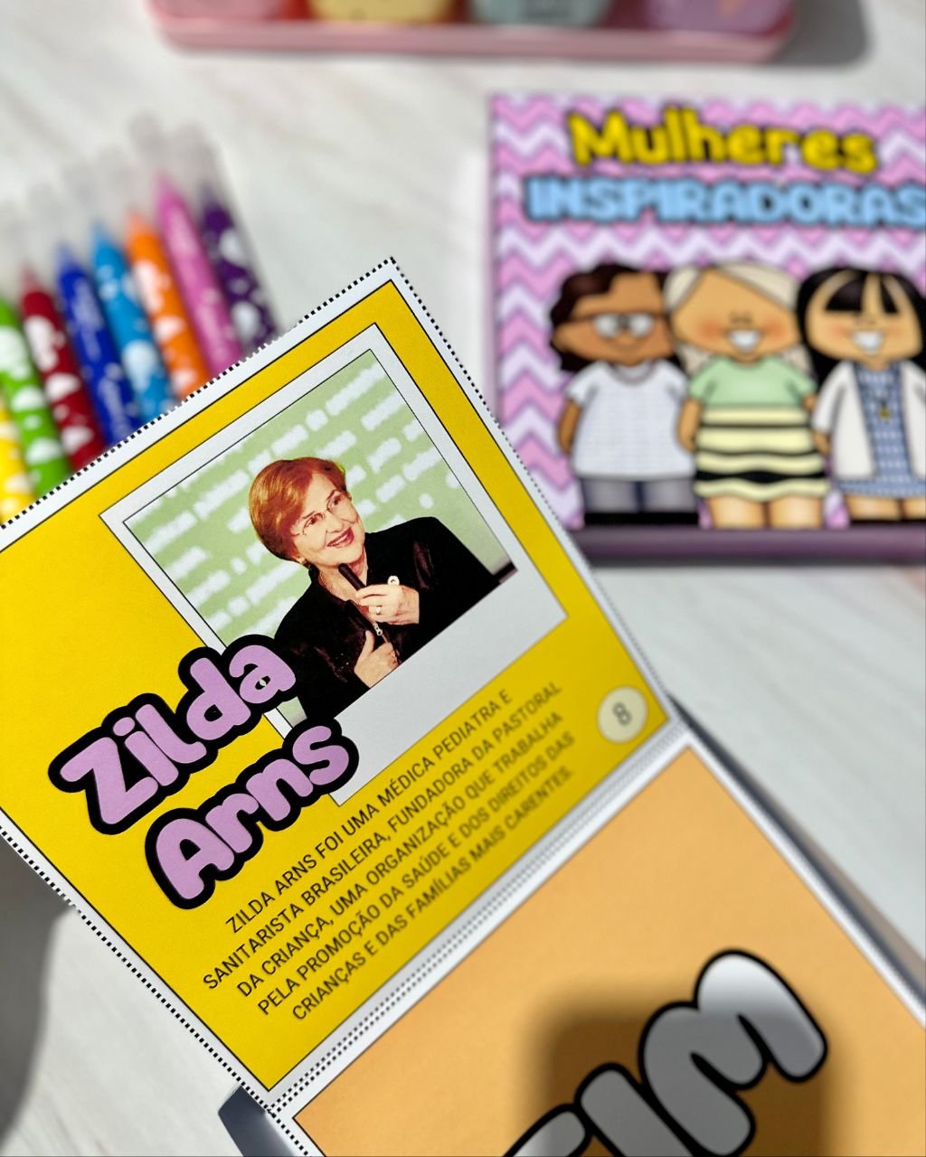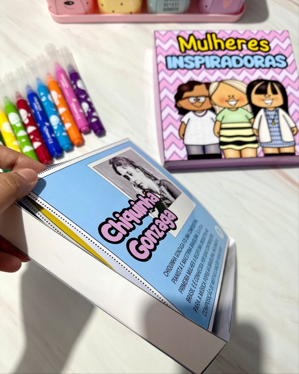 Esse material vai em formato de caixa e inclui a história de mulheres que foram
