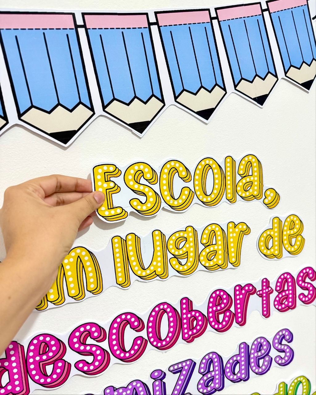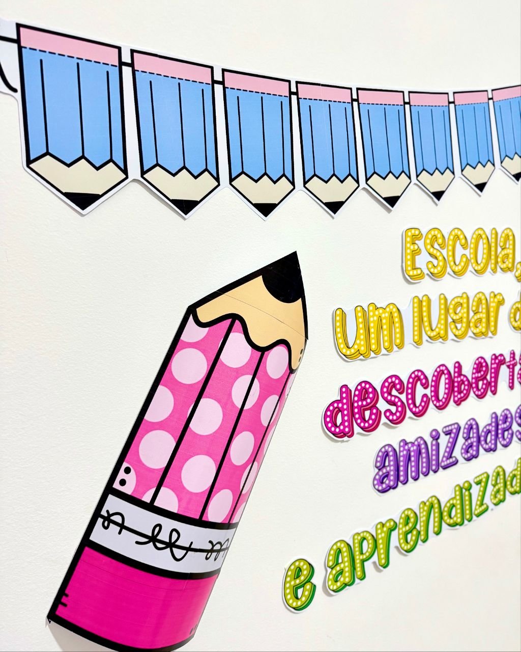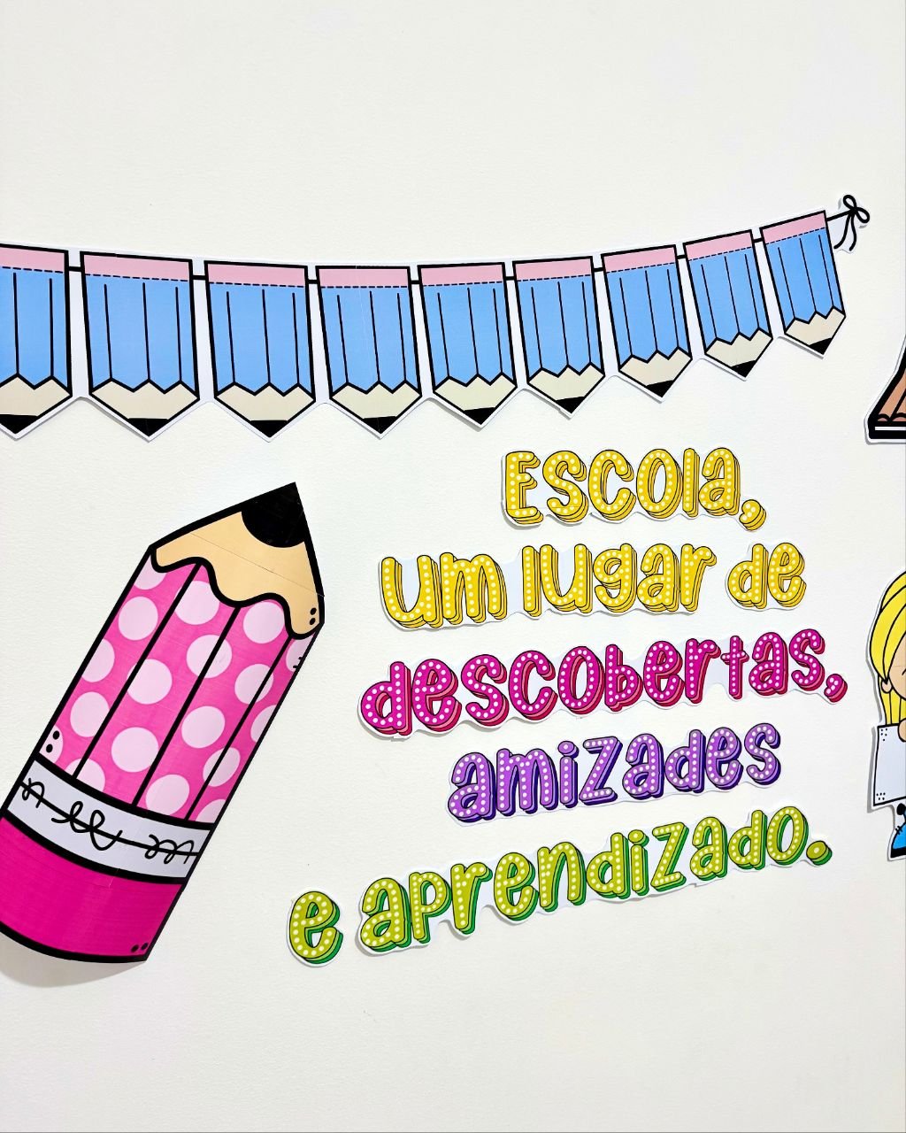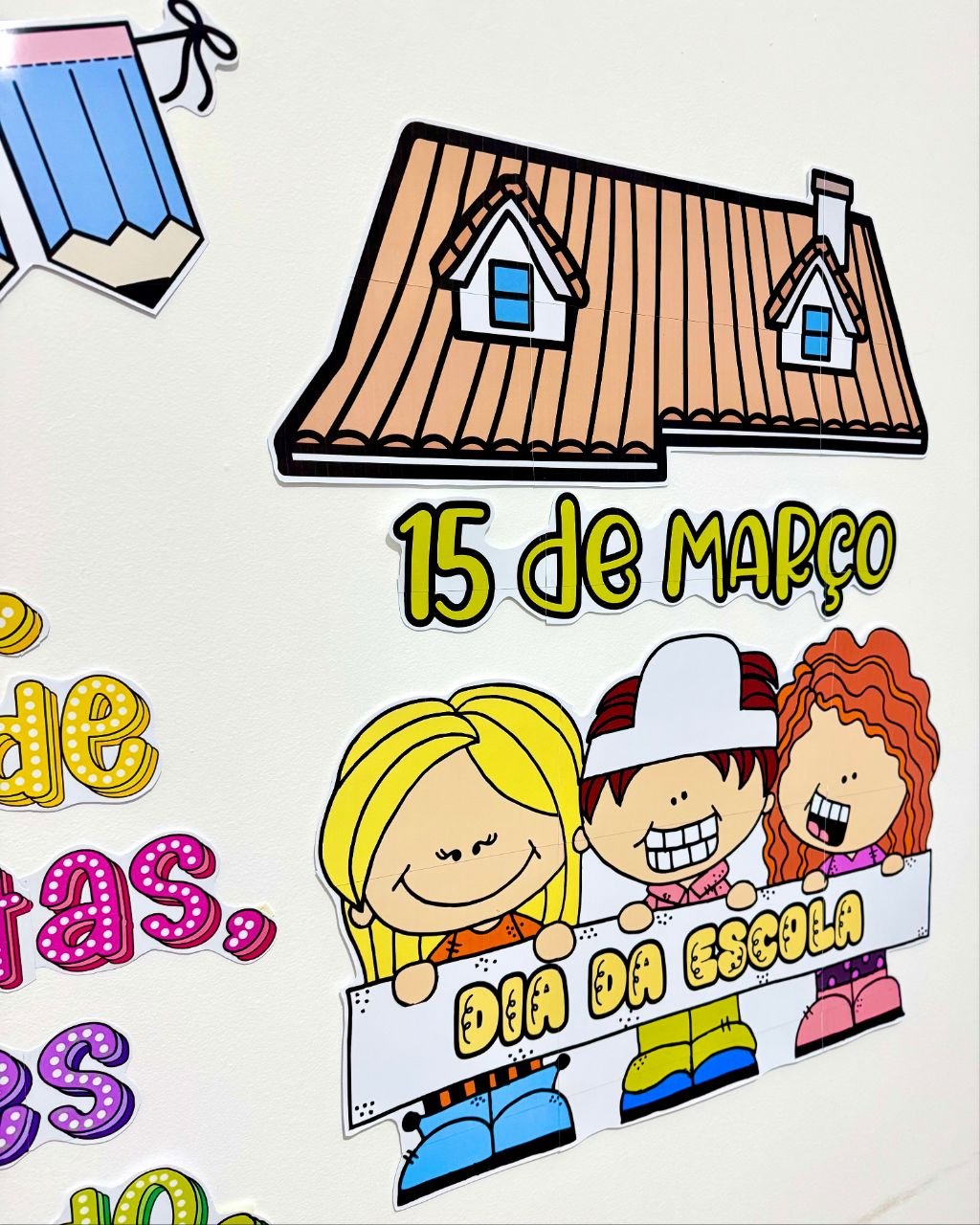 Painel tema Dia da Escola para turmas de Educação Infantil e séries iniciais do Ensino Fundamental.
